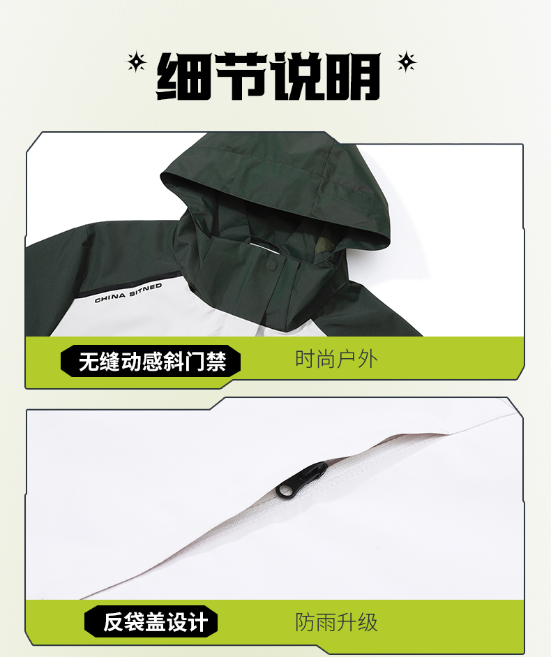 高防水透湿科技加持,外层有效抵御暴风雨侵袭,底层防水透湿膜能及时导离身材汗湿,保持体感舒适干爽。