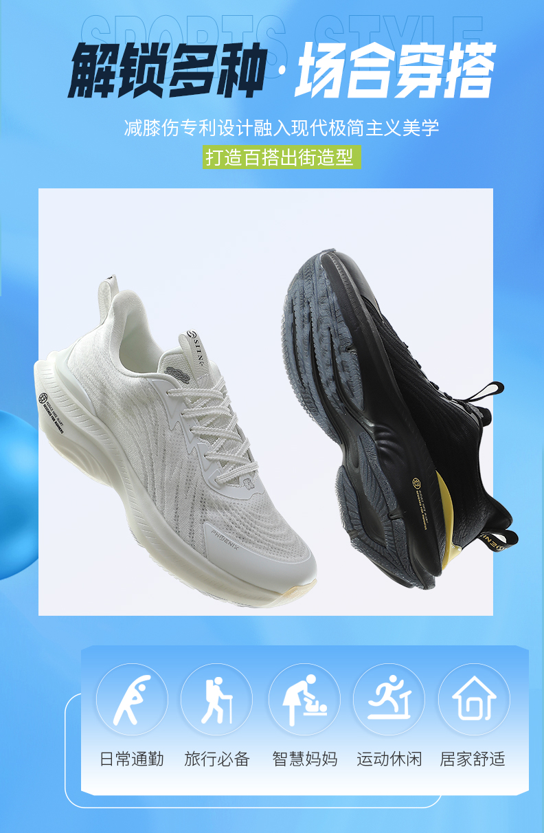 定制网布,舒适透气,大面积定制网布,带来透气与超轻的穿着感受;贴合足跟,不易掉跟,后跟半包围立体稳定片,守护落地的每一步都平稳、踏实;高弹性中底,提升了穿着舒适度,大体重的朋友也一样可以驾驭;超耐磨YCPU外底,提供比橡胶更高2倍的耐磨性能和防滑性能;原创授权“减膝伤专利跑鞋”,减少跑步损伤,安全才是顶配的体验;隐形足弓支撑片,减少长时间行走的疲劳感。