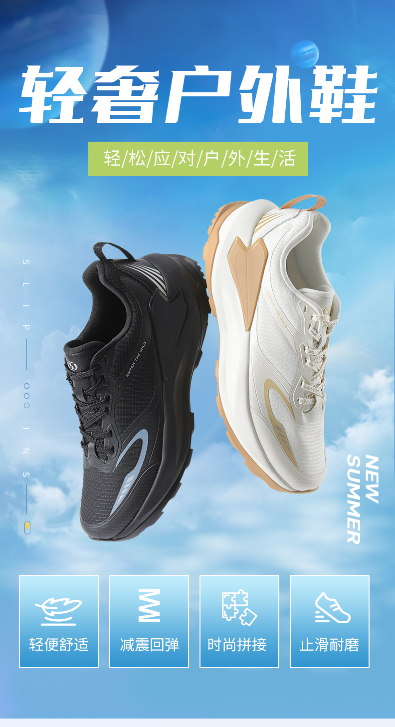 防泼水鞋面,轻松应对户外生活;橡胶大底,耐磨防滑;自研防脱落鞋带,能够有效防止脱落;多种材质拼接而成,呈现出丰富的层次感、独特的外观。